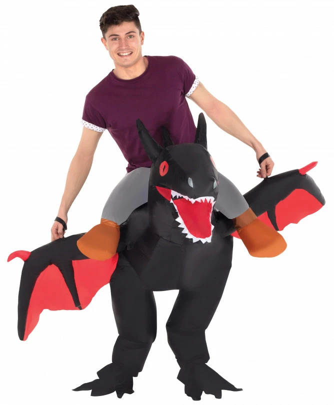 Everyone loves dragons, so the Ride On black dragon inflatable costume is a sure-fire winner of a costume for virtually any occasion. Regardless of whether it’s for Halloween, a party or just because you feel like riding a dragon, this costume is great fun and a real head-turner.Our Ride On outfits go down a treat wherever they are worn.