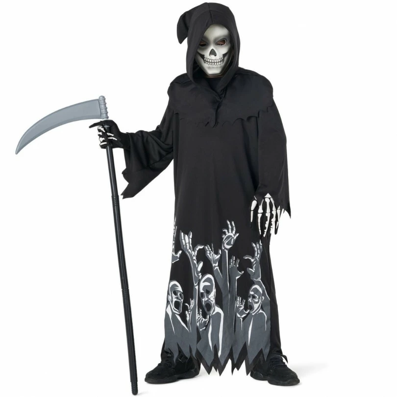 This spooktacular outfit comes with a hood, mask, scythe, robes and skeleton gloves.