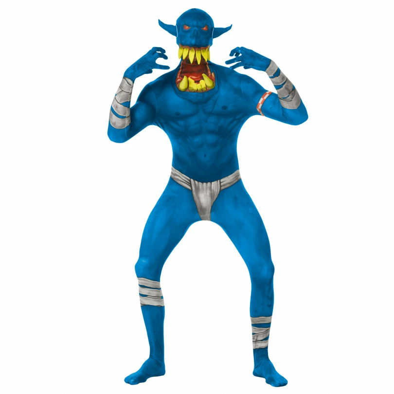 Turn yourself into a grotesque orc monster with the men’s jaw dropper blue orc Morphsuit. Ideal for Halloween parties and events, and maybe even a Lord of the Rings viewing party, the jaw dropper orc Morphsuit is a sure-fire winner. Each suit is crafted from breathable, stretchable material that you can even drink through.