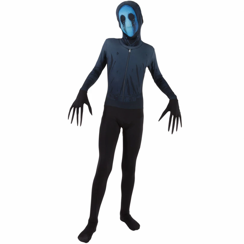 The kids’ Eyeless Jack Morphsuit costume is not for the faint-hearted and is bound to both terrify and delight onlookers at any Halloween party or event. Eyeless Jack originates from an internet Creepypasta and is a mysterious monster with little-to-no facial features and black holes where its eyes should be ““ shudder.