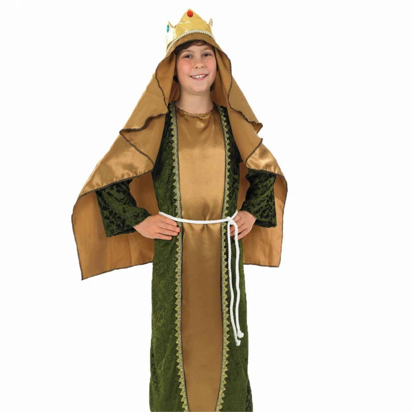 This fun, festive kids’ costume allows your son to take on the important role of one of the three wise men from the nativity story. This religious children’s outfit is perfect if your child is taking part in the school nativity play or maybe even dressing up for the family’s festive photograph. The kids’ gold wise man costume comes with a long gold tunic, detailed olive cape, rope belt and headpiece.