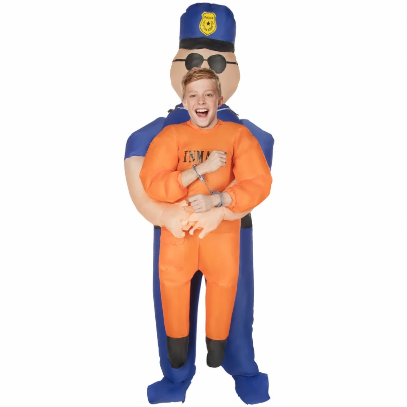 Whoop whoop, that’s the sound of the police! The kids’ inflatable police Pick Me Up costume makes it look like your child has been caught on the wrong side of the law. Fortunately, this simply brilliant kids’ fancy-dress idea is the result of a clever optical illusion and a battery-powered fan. Our Pick Me Up outfits go down a treat wherever they are worn.