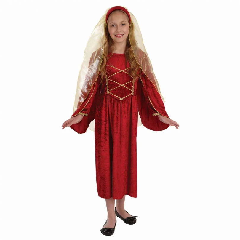 Your daughter will look like Tudor royalty once she puts on this lovely kids’ Medieval princess costume. Brimming with Tudor style, this child’s costume mimics the fabric and colors that would have been worn by the upper echelons of Medieval society. The girls’ Medieval princess costume is perfect for Book Week or costume parties and includes a detailed dress with matching veil.