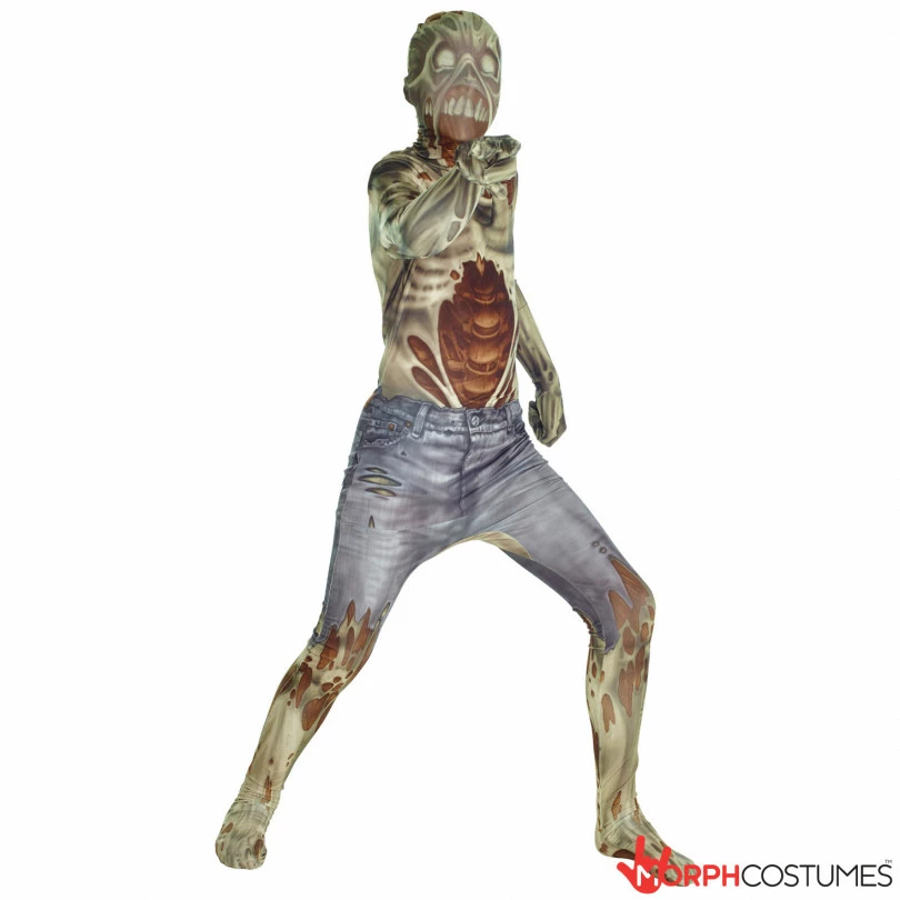The kids’ zombie Morphsuit is downright terrifying and allows your child to take a stroll with the walking dead at any Halloween event or costume party. Ten times scarier than any regular zombie costume, this kids’ outfit showcases all the grotesque details of the undead thanks to a high-quality all-over print. The kids’ zombie Morphsuit uses a superior blend of fabrics to deliver a great fit and excellent vision as your child wears it.