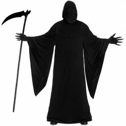 Make sure everyone at the party feels the icy cold touch of Death on their shoulders with the terrifying men’s Grim Reaper horror costume. Your bound to put the frighteners on with this outfit, particularly with the face covering as black as night and the menacing robes of Death surrounding you.