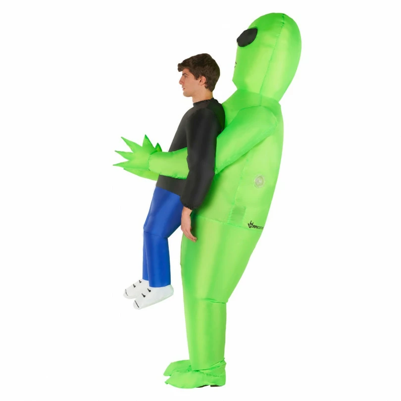 Right now, there’s nothing cooler than our inflatable Piggyback costumes and this Alien outfit is guaranteed to raise eyebrows and turn heads wherever you wear it. We’re not sure whether this alien has come in peace or not, but they’re certainly making a run for it with you in their arms (or at least this inflatable costume’s clever design makes it seem that way).