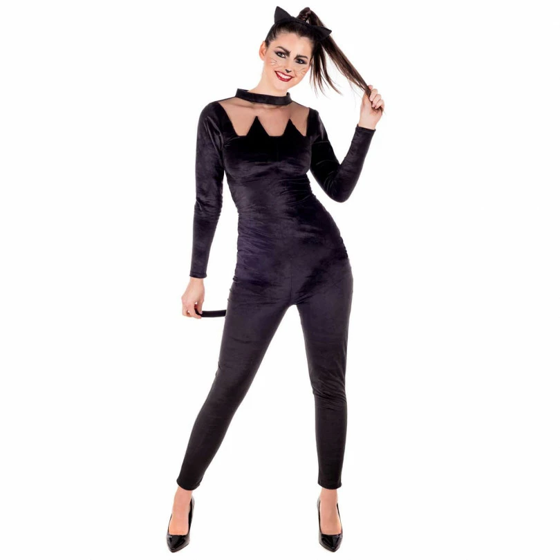 Well meow Miss Kitty, you’ll be the cat’s pyjamas with the women’s black cat fancy-dress costume. This purrrfect outfit is cute, fun and is especially ideal if you have a friend going to the party with you as a witch. Ideal for fancy-dress parties and Halloween events, the women’s black cat costume includes: black catsuit with attached tail and a headband with cat ears.