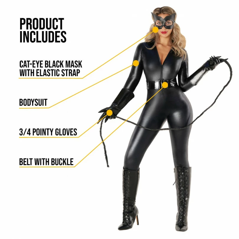 Ready to purr-fect your Halloween look? Look no further than our women’s sexy black cat bodysuit costume! This stylish and high-quality costume will have you looking like the cat’s pyjamas with its sleek black bodysuit, eye mask, pointy gloves and belt. So get ready to scratch your way to the top of the costume contest and make your mark as the most purr-fect cat in town.