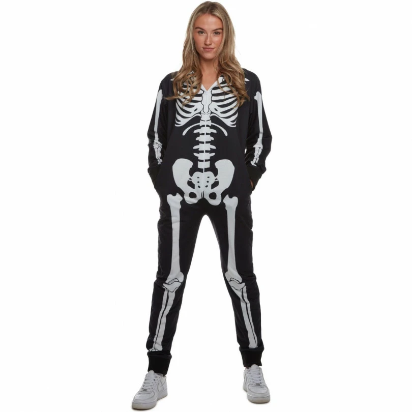 The womenโs skeleton onesie costume is a sure-fire winner for any fancy-dress occasion thanks to its high quality and iconic look. Each onesie features a skeleton print on the front and rear.